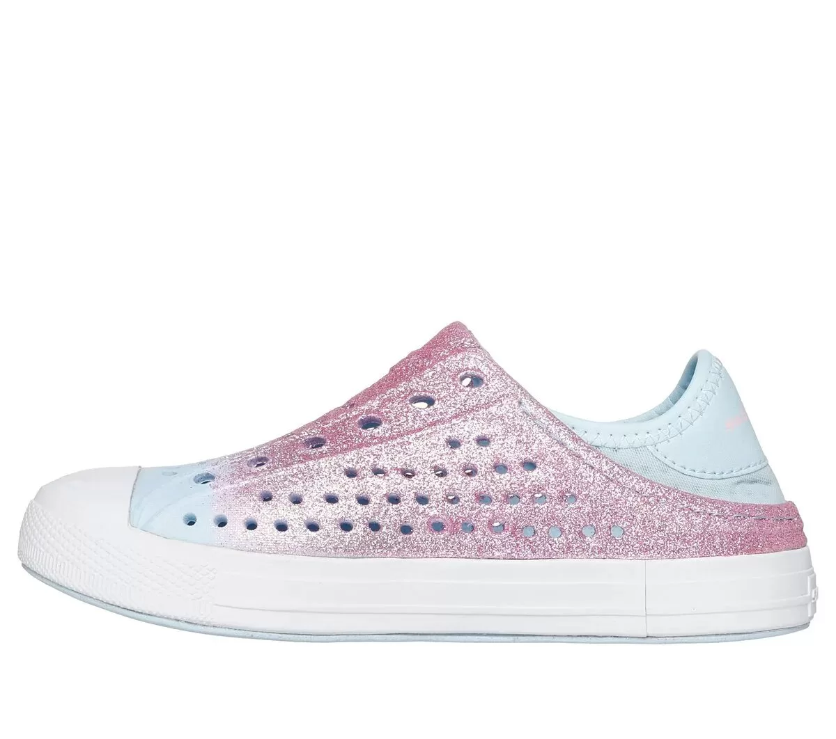 A warm weather favorite gets even more comfortable with Foamies®: Guzman Steps – Glitterland. This sculpted sneaker features a glittery Foamies® flexible EVA perforated upper with a cushioned insole and a collapsible soft neoprene heel for easy on and off.