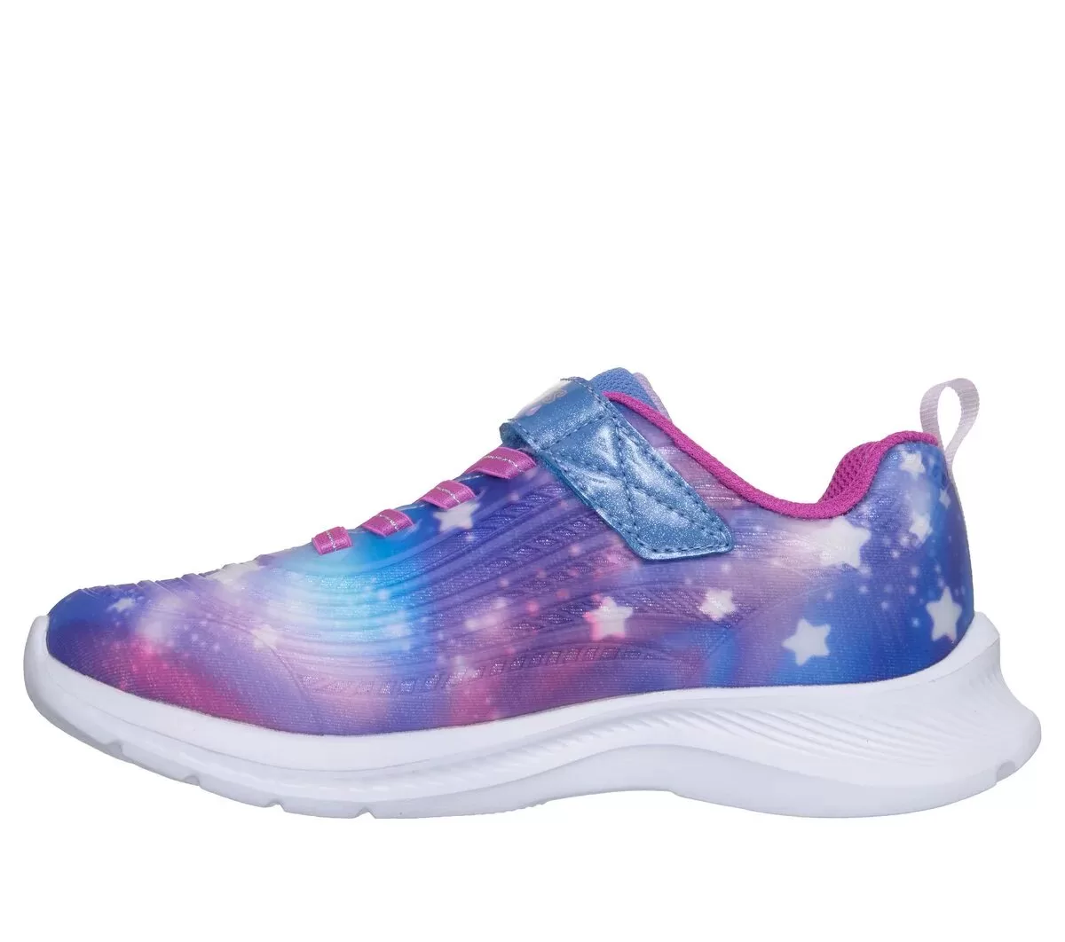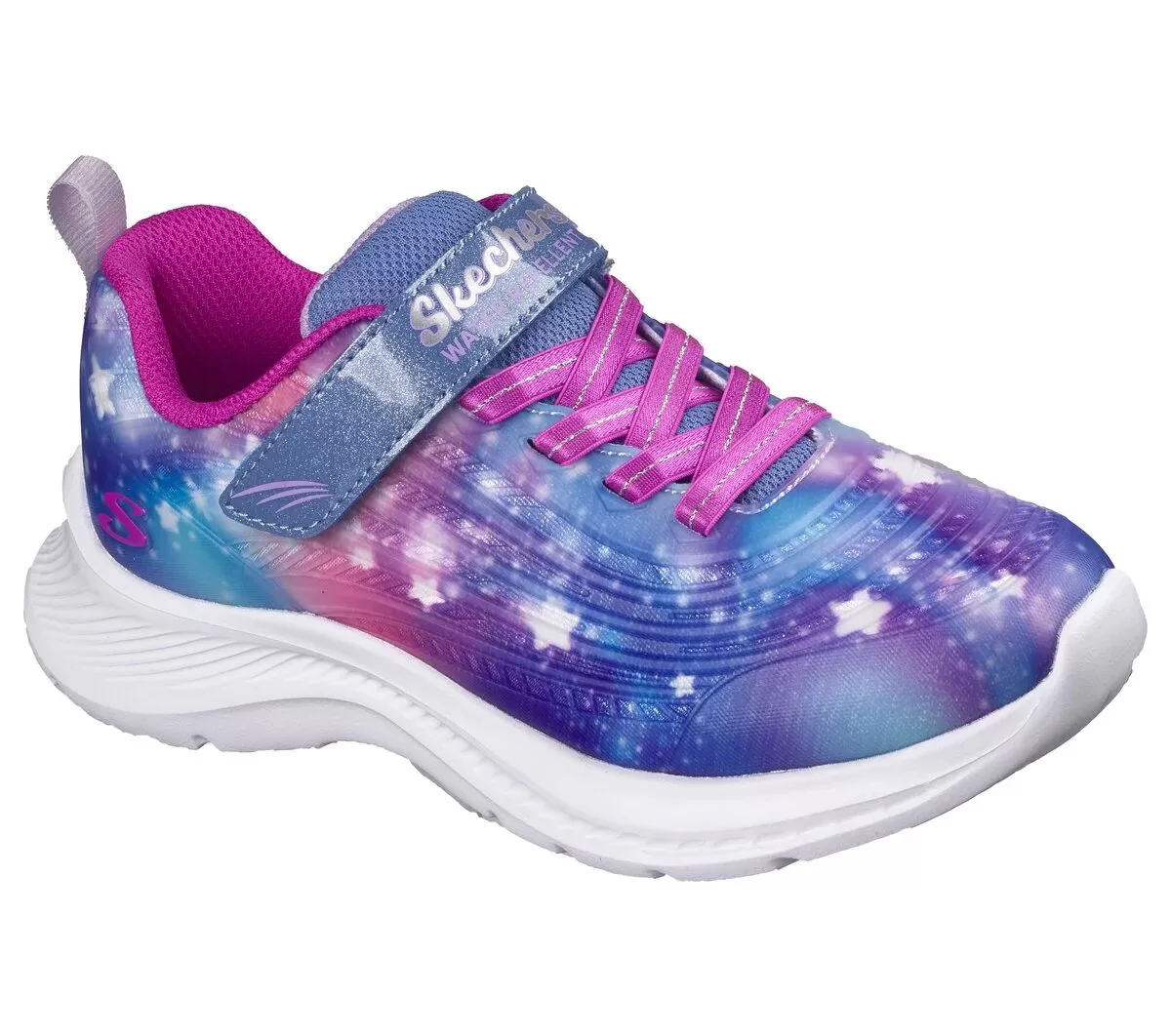 Reach for the stars in comfort and style with Skechers Jumpsters 2.0 – Horizon Sky. This water-repellent Skechers adaptive closure design features a star print synthetic upper with translucent Tuff-Tech overlays, stretch laces, and a hook-and-loop instep strap.