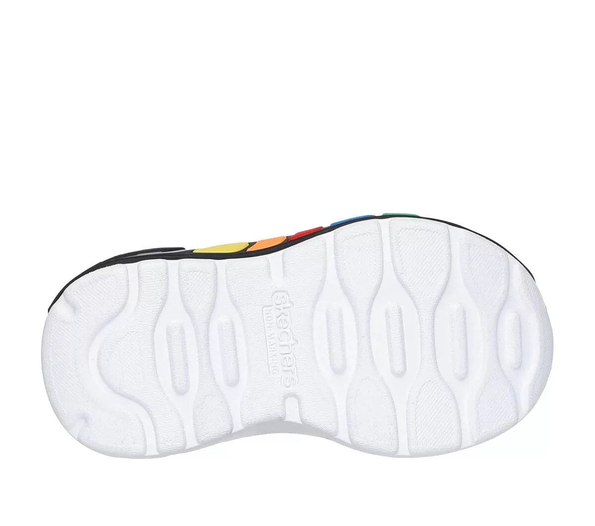 Be the fun in colorful light-up style wearing Skechers Play Scene – Storm Brights. This sporty light-up design features a mesh and synthetic upper with stretch laces, adjustable instep strap, cushioned comfort insole, and a multi-colored light-up midsole tech piece.