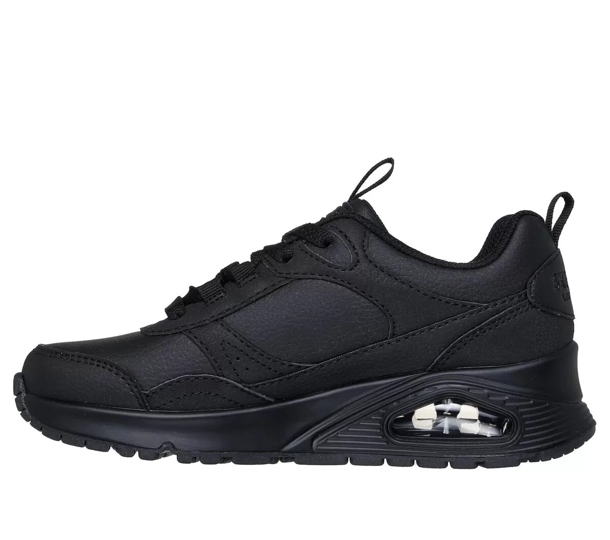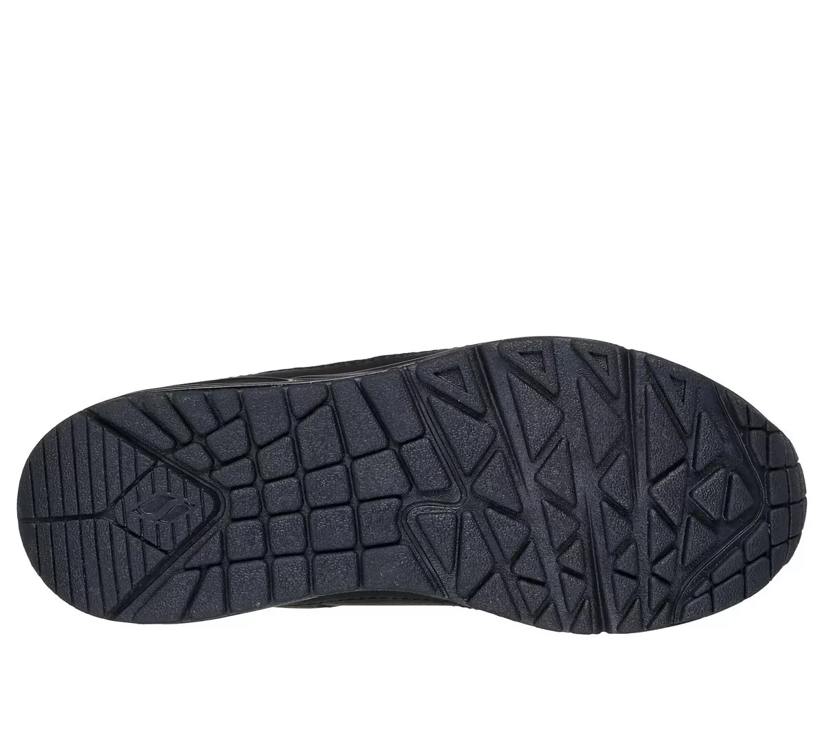 Level up your sneaker game with cushioned comfort wearing Skechers Street™ Uno Gen1 – Class Edge. This monochromatic lace-up style features a synthetic overlay upper, Skechers Air-Cooled Memory Foam® comfort insole, and a visible Skech-Air® airbag midsole.