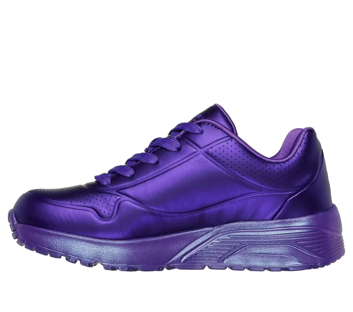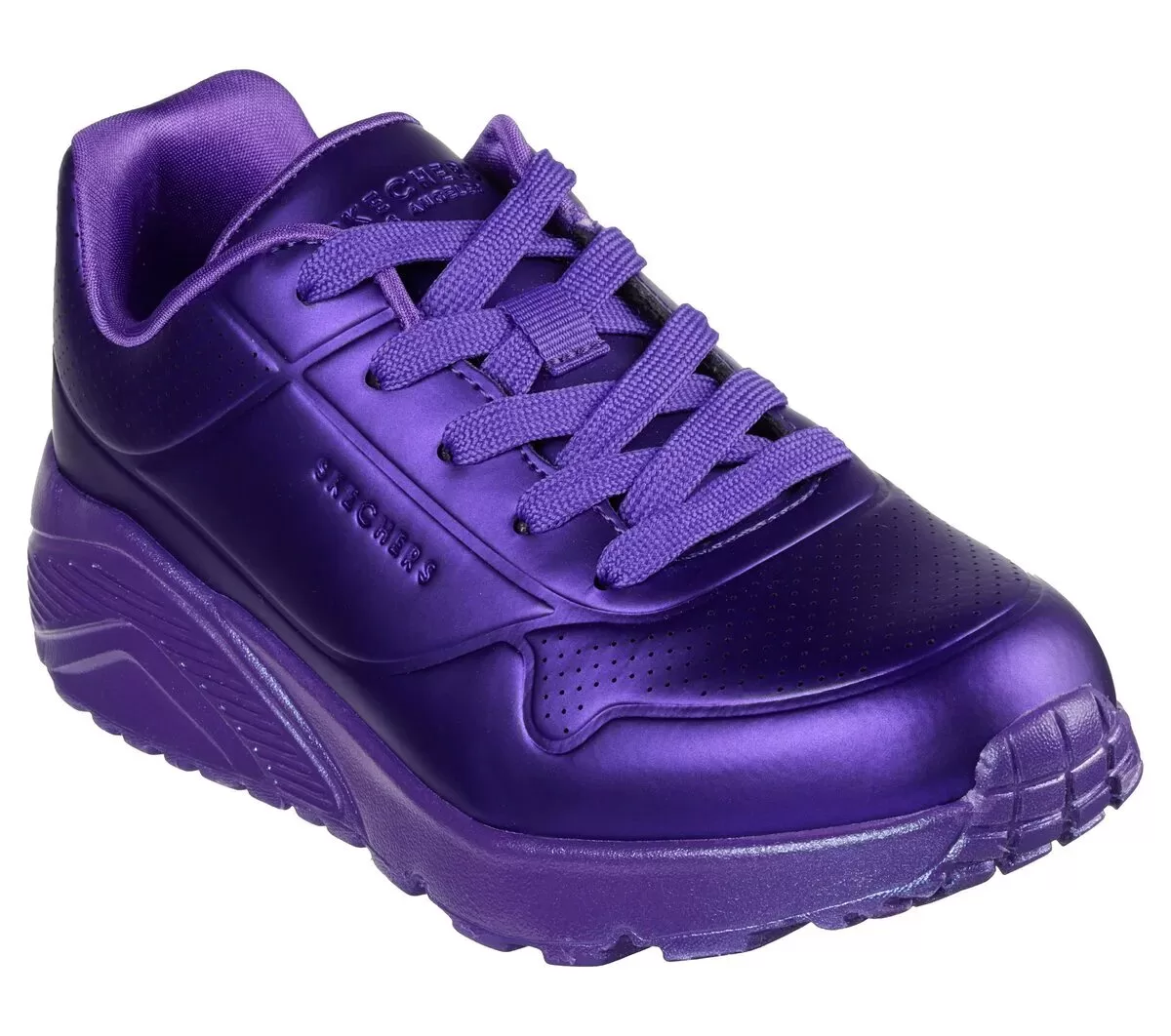 Glam up your outfit with cushioned comfort wearing Skechers Street™ Uno Lite – Jewel Mode. This lace-up fashion style features a jewel toned embossed duraleather upper, Skechers Air-Cooled Memory Foam® insole, plus a platform wedge cushioned midsole.
