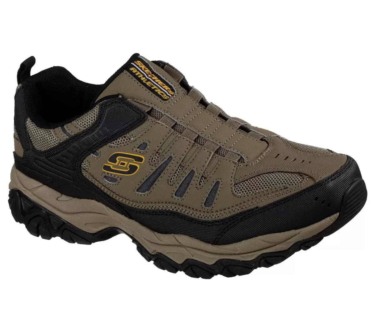 A classic style gets even easier to wear with Skechers After Burn M. Fit. This slip-on sporty trainer features a leather, synthetic and mesh upper with an Air-Cooled Memory Foam® insole.