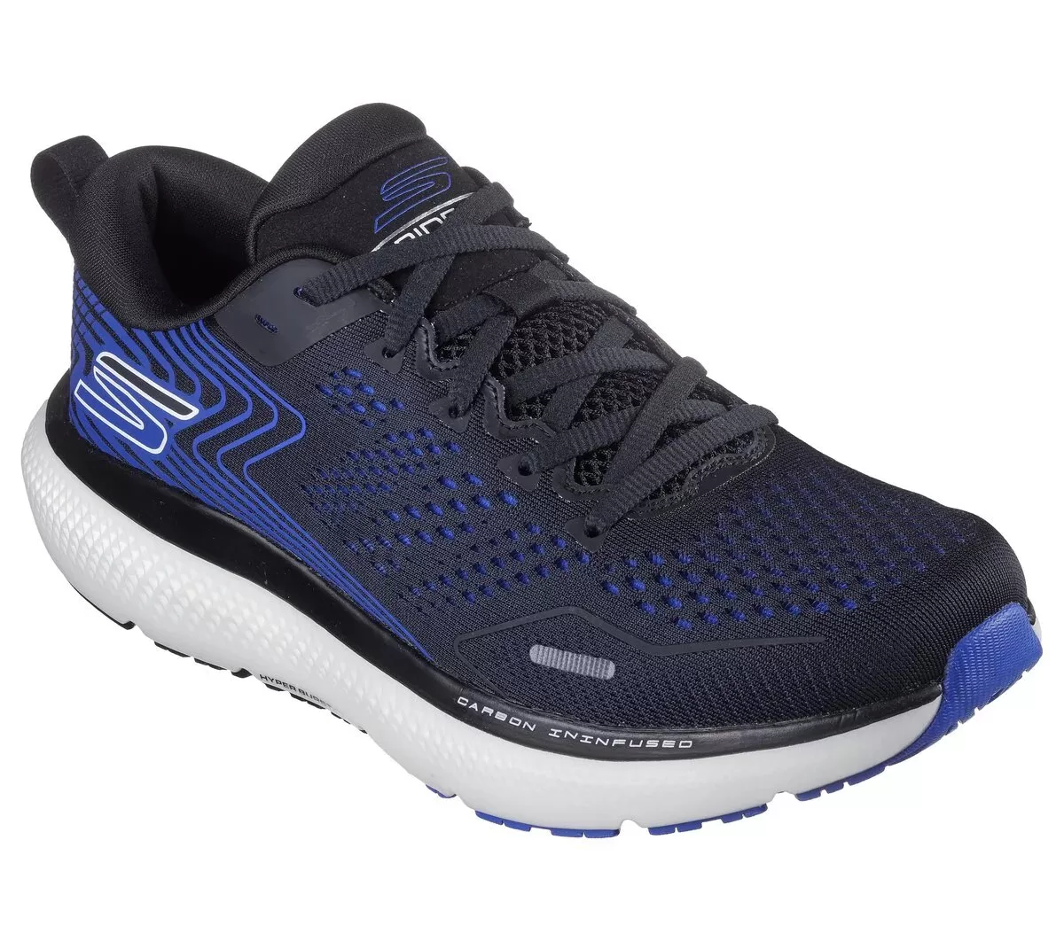 Get ready to move in lightweight supportive comfort with Skechers GO RUN Ride 11™. This carbon-infused design features a lace-up breathable engineered mesh and synthetic upper with a removable Skechers Arch Fit® insole, HYPER BURST ICE™ cushioning with HYPER ARC™, and a Goodyear® Performance Outsole.