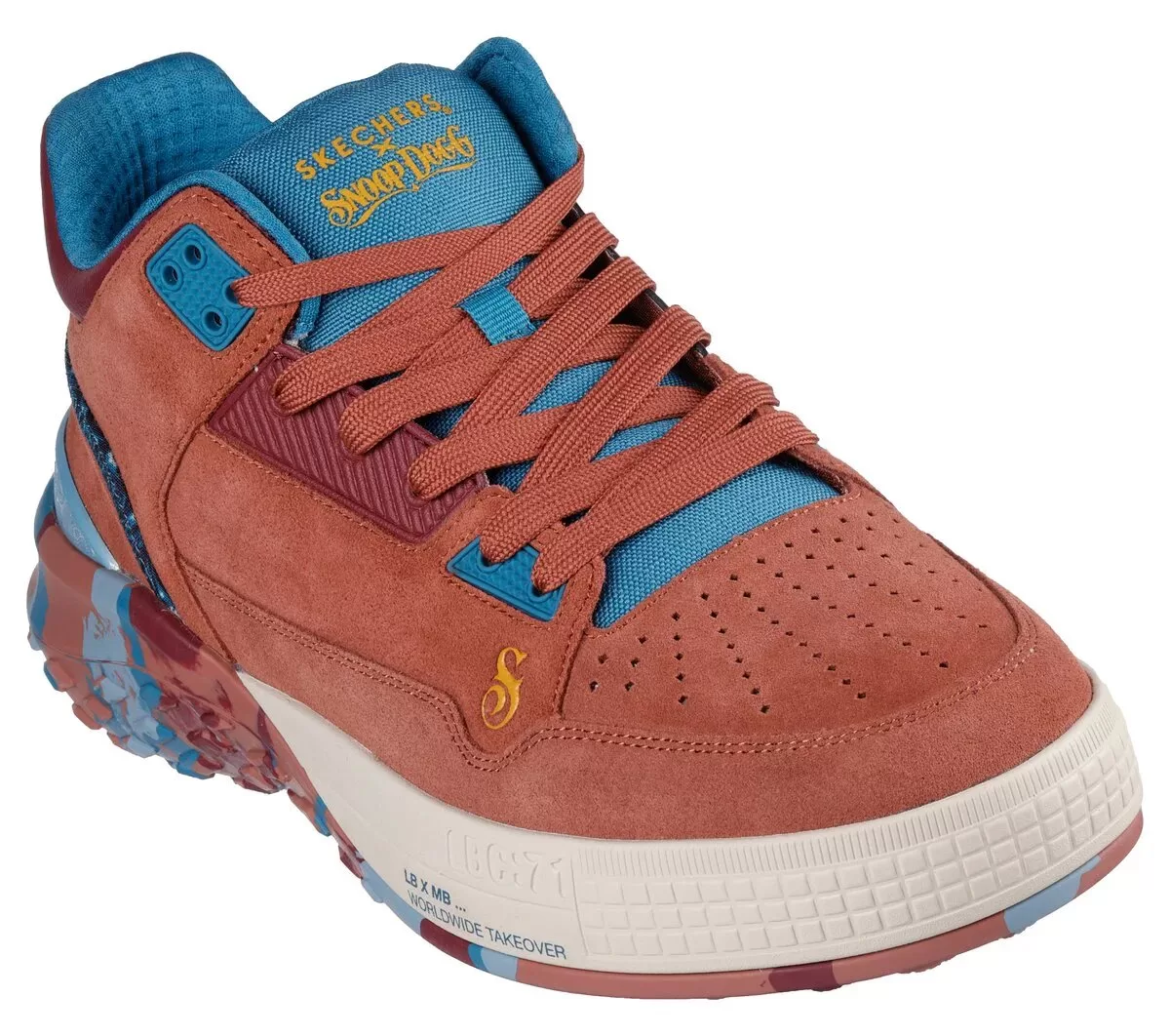 Dropping like it’s hot: Skechers x Snoop Dogg: Sizzle – Buckets Blazed Trails. This fly and fresh mid-top court style is as unique as the D-O-Double G himself. Featuring a genuine suede and canvas upper with paisley and foil accents, a marbled multicolor outsole, and an oh-so-cushy Skechers Air-Cooled Memory Foam® insole.