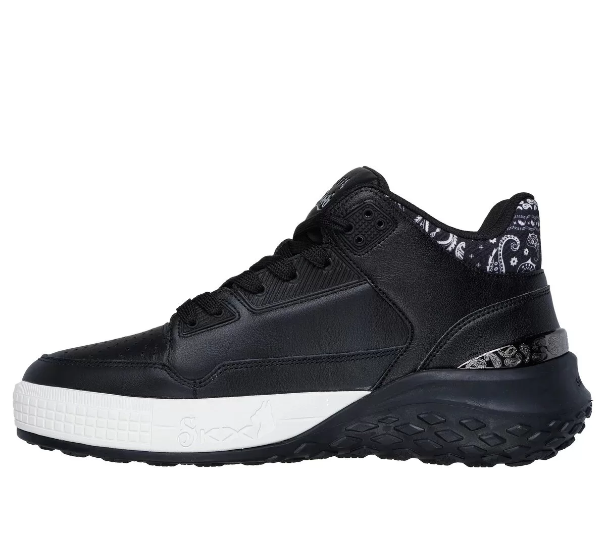 Dropping like it’s hot: Skechers x Snoop Dogg: Sizzle – Buckets OG. This fly and fresh mid-top court style is as unique as the D-O-Double G himself. Featuring a smooth and perforated premium leather upper with paisley print collar detail, metallic heel trim, and an oh-so-cushy Skechers Air-Cooled Memory Foam® insole.