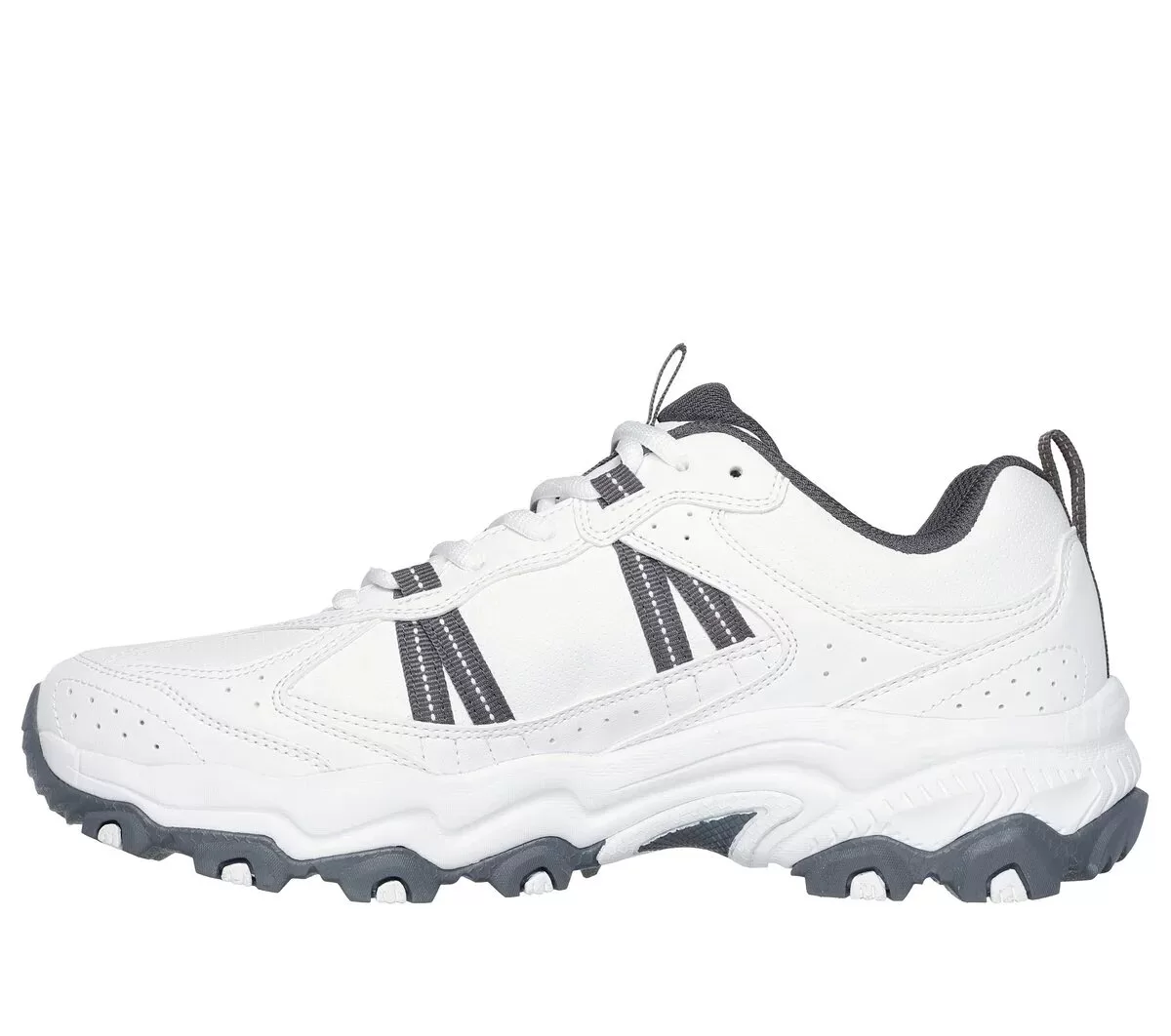 Hit the trails in athletic comfort with Skechers Stamina AT – Premium Stitch. This lace-up hiking trail design features a synthetic duraleather and mesh upper with a cushioned Skechers Memory Foam™ insole.