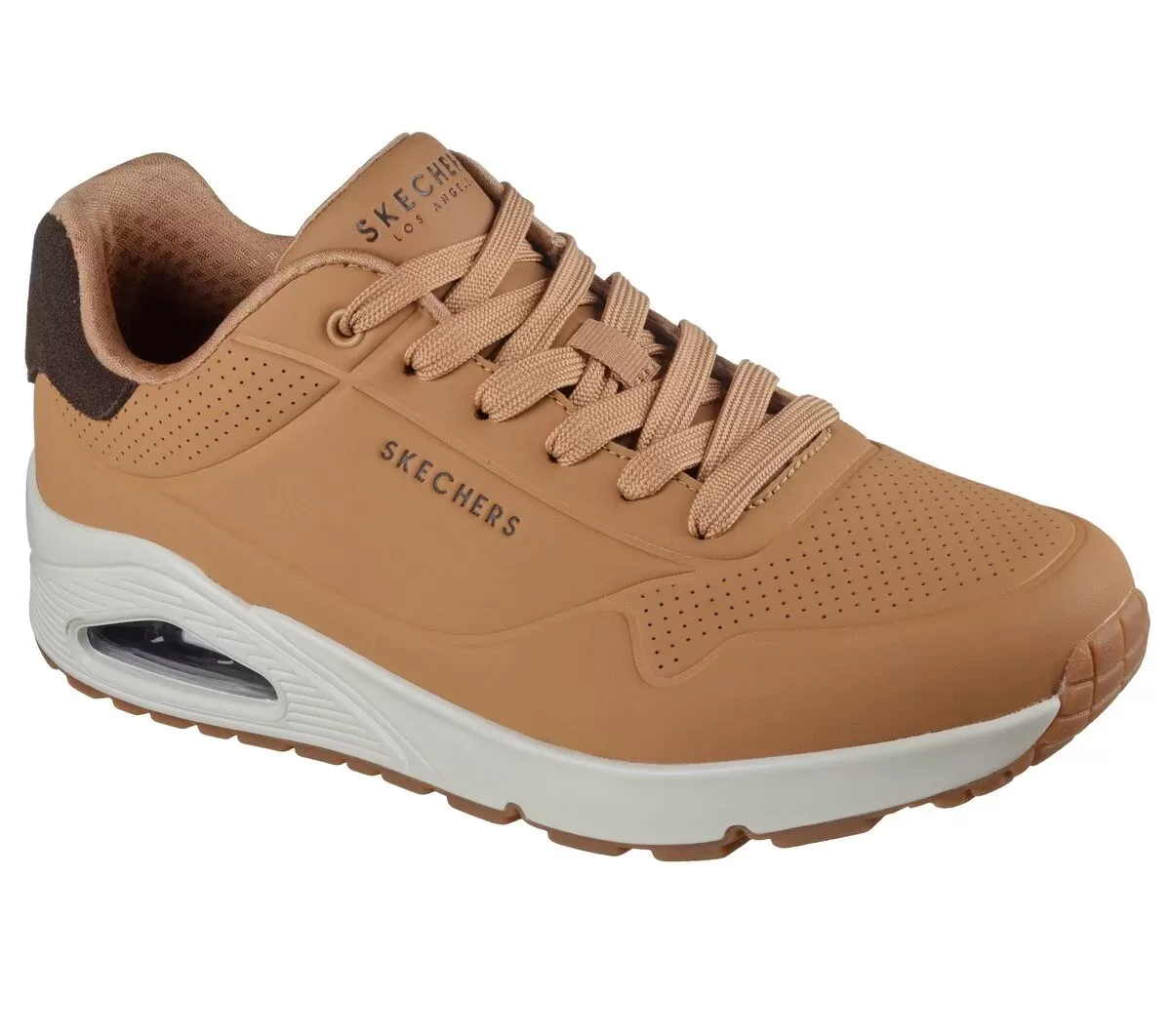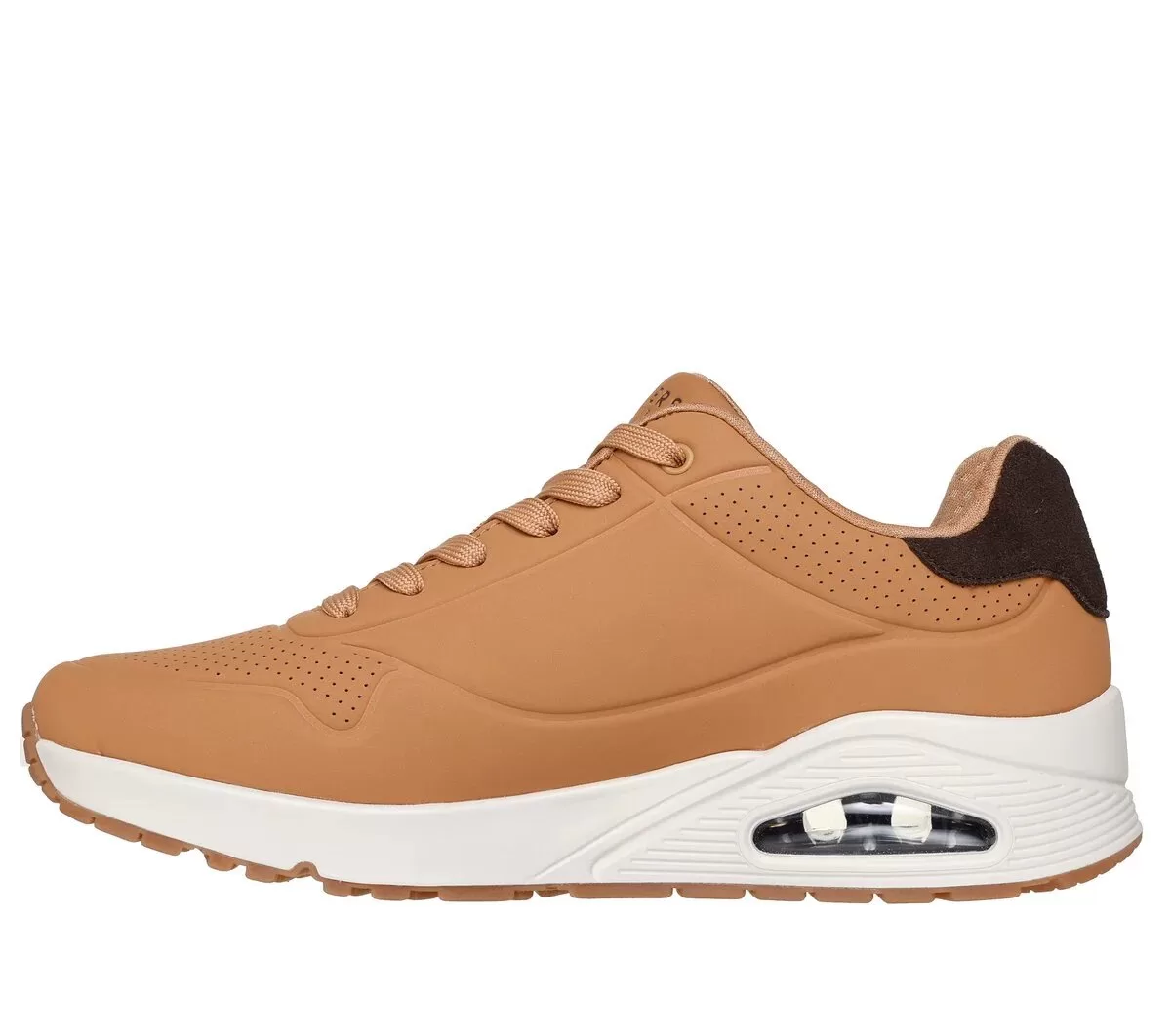 Sporty refined style meets comfort in Skechers Street™ Uno – Suited On Air. This lace-up classic jogger style features a debossed durabuck upper with suede heel trim, a Skechers Air-Cooled Memory Foam® insole, and Skech-Air® visible airbag midsole.