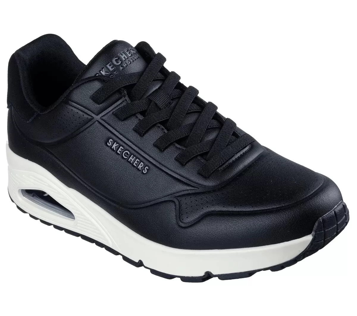 Smooth, sporty style and easy-wearing comfort combine in Skechers Street™ Uno – Tailored Air. This No Tie Fit™ sneaker features a duraleather upper with fixed stretch laces, a Skechers Air-Cooled Memory Foam® insole, and a Skech-Air® visible airbag midsole.