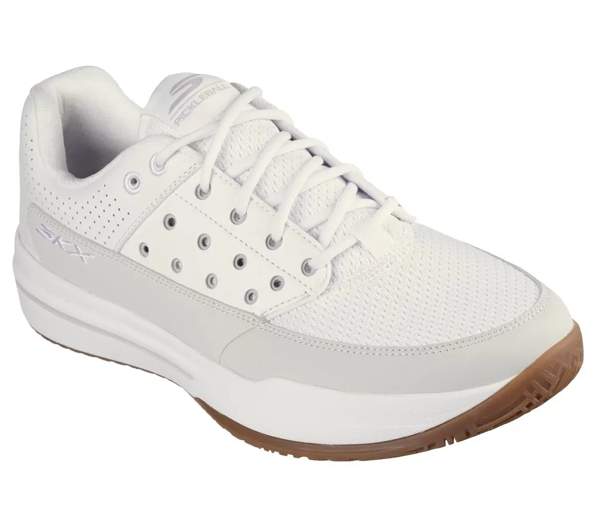 Elevate your game with unstoppable comfort wearing Skechers Viper Court Luxe. This performance court lace-up features a leather and synthetic upper with a removable Arch Fit® insole and lightweight ULTRA GO® Foam cushioning. This design is complete with a Goodyear® Rubber Performance Outsole built for increased durability and control on the court surface.