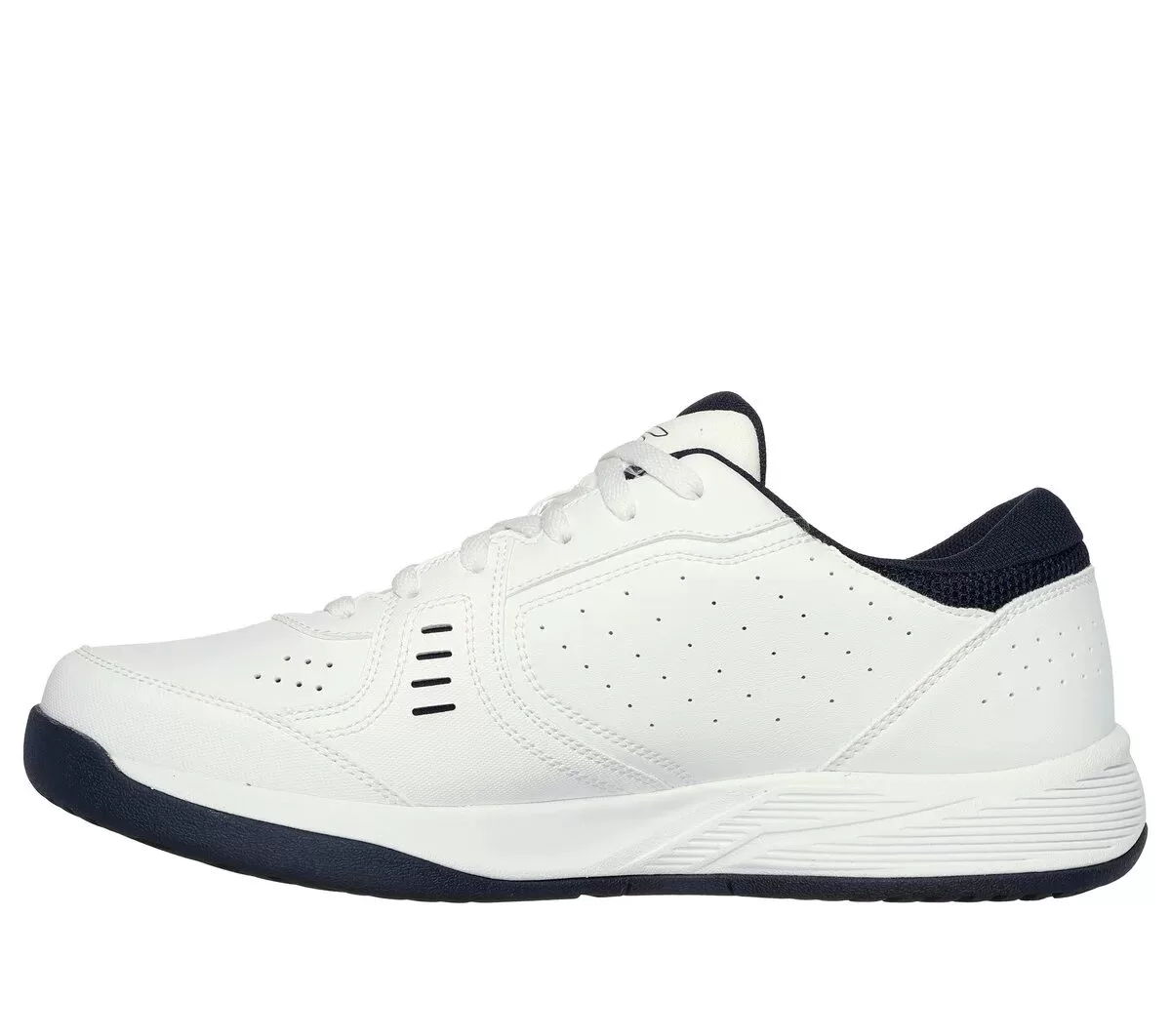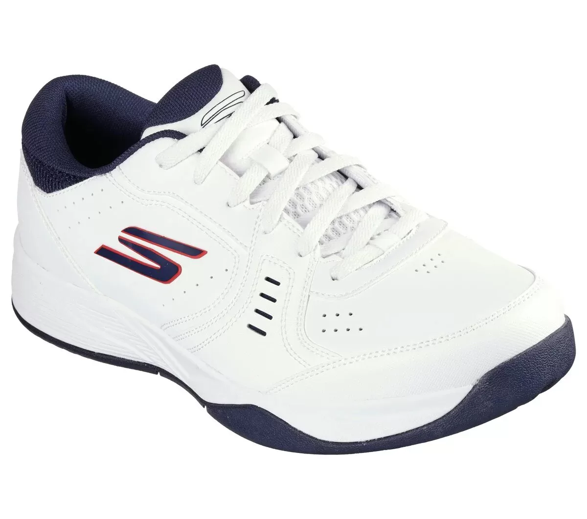 Smash your own record wearing Skechers Relaxed Fit®: Viper Court Smash. This vegan performance court lace-up features a smooth synthetic upper in a Relaxed Fit® with lightweight ULTRA FLIGHT® cushioning and a non-marking indoor/outdoor rubber outsole.