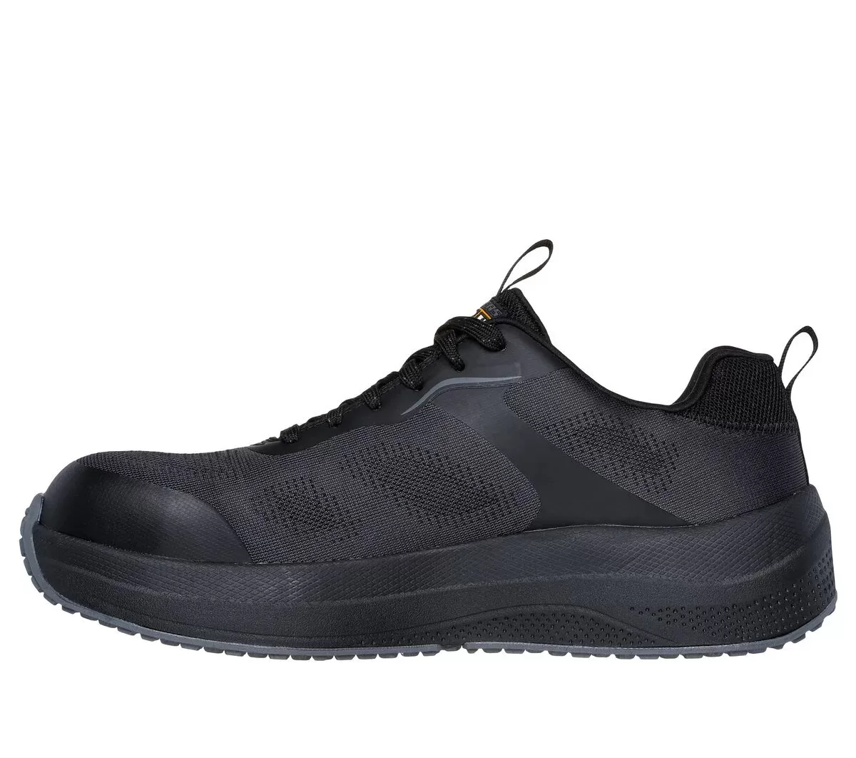 Surefooted comfort and safety deliver in Skechers Work™ Transporter Lite. This lace-up features a synthetic and knitted upper with a cushioned Skechers Air-Cooled Memory Foam® insole and a carbon nano safety toe.