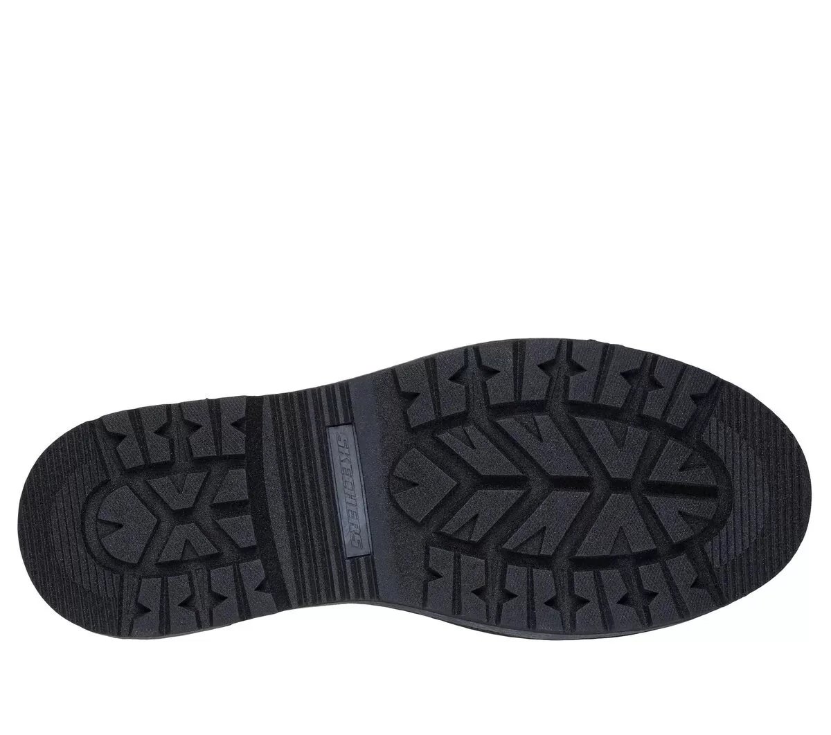 Head outdoors rain or shine wearing Skechers Relaxed Fit®: Corado – Jaxx. This classic trail-style boot features a smooth, waterproof faux-leather upper with padded collar, a charcoal-infused Skechers Air-Cooled Memory Foam® insole, and Goga Mat Arch™ cushioning for added support.