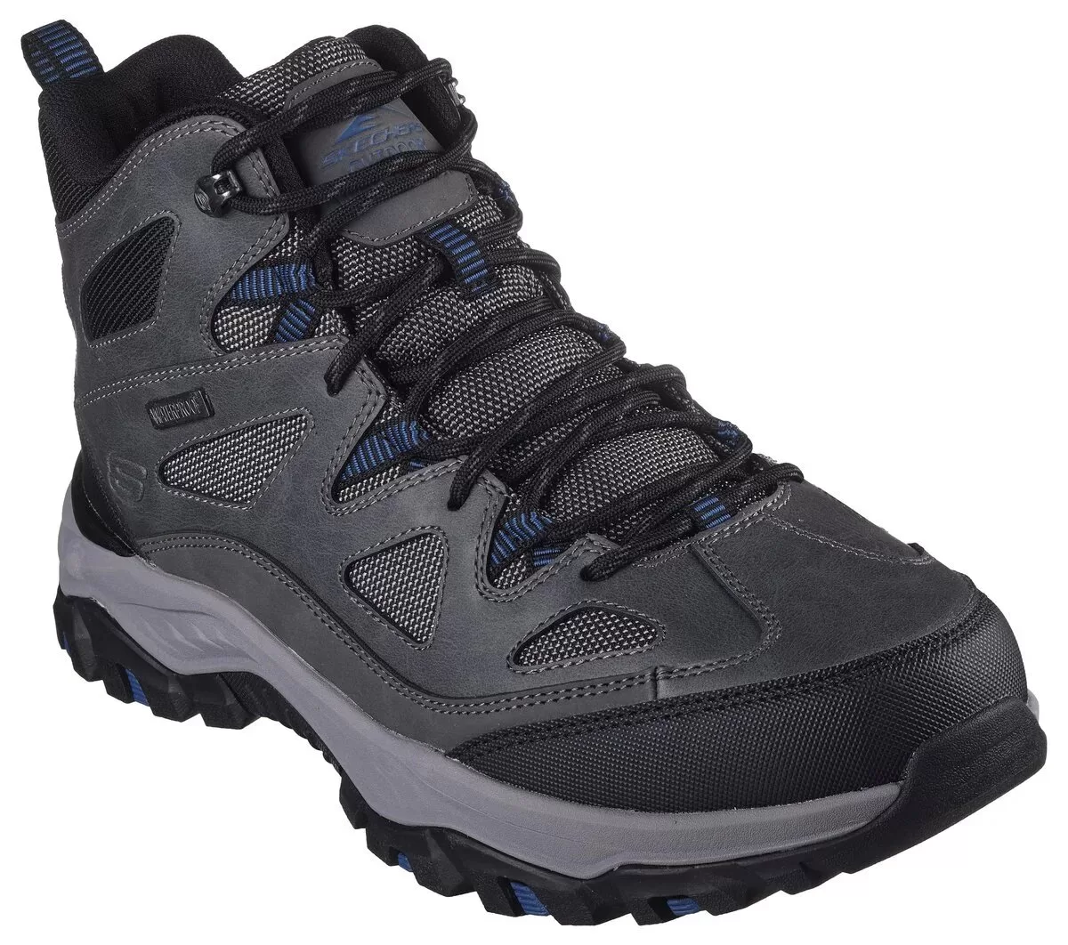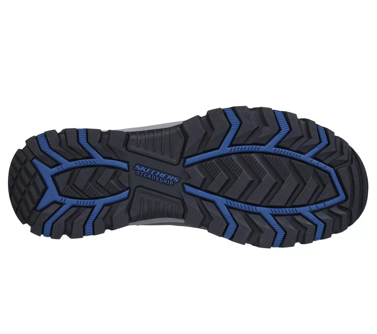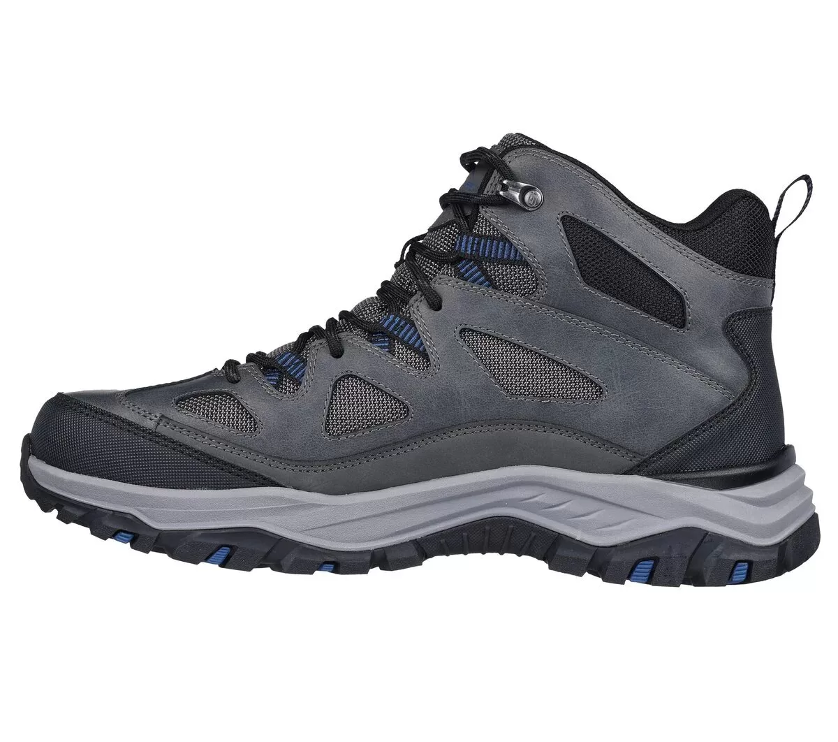 Head outdoors rain or shine wearing Skechers Relaxed Fit®: Rickter – Bodine. This waterproof trail hiking boot features a roomy leather and synthetic upper with a lace-up front and a Skechers Air-Cooled Memory Foam® insole.