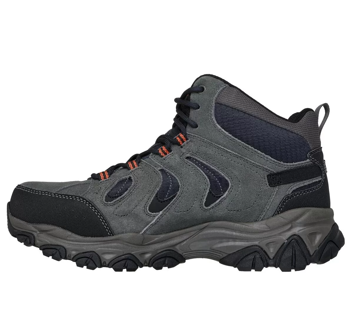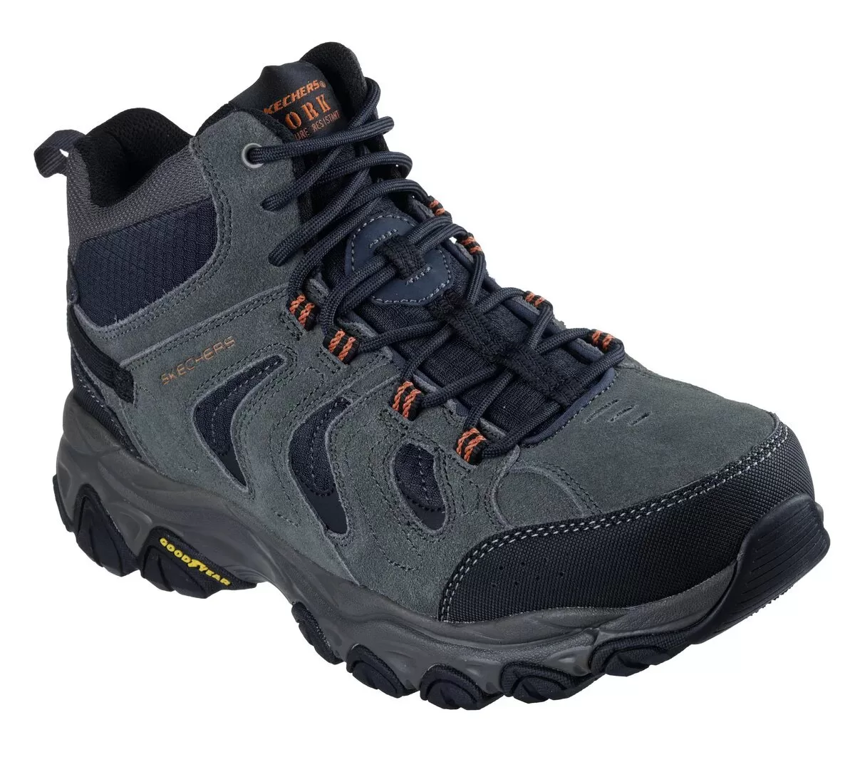 Rugged outdoor style and on-the-job comfort combine in Skechers Work™: After Burn M.Fit 2.0 – Zibiax. This lace-up hiker features a leather, synthetic, and mesh upper with a steel safety toe, cushioned Skechers Air-Cooled Memory Foam® insole, and a Goodyear® Rubber Outsole for anti-slip traction under wet and dry conditions.