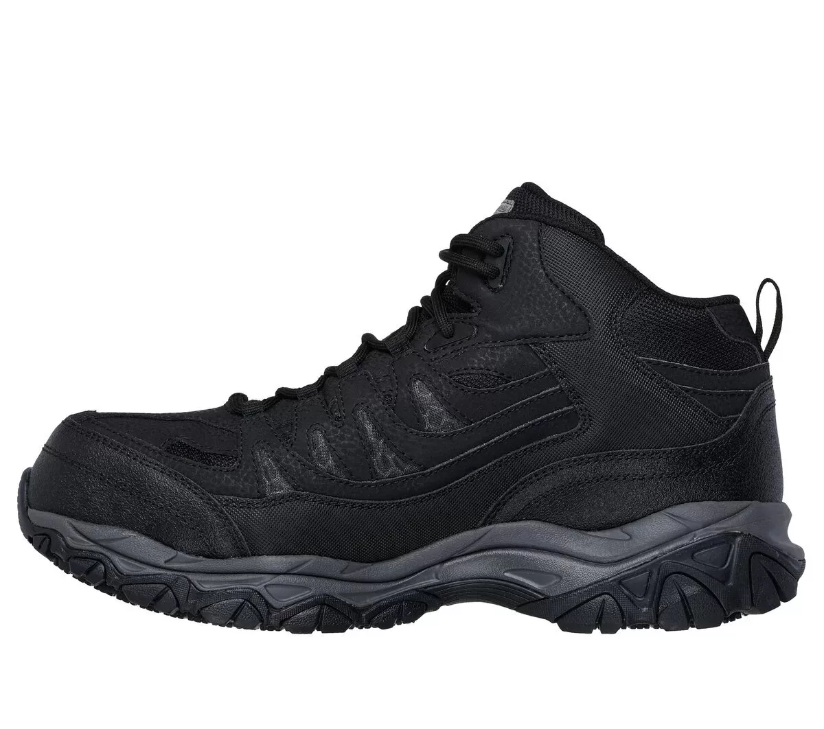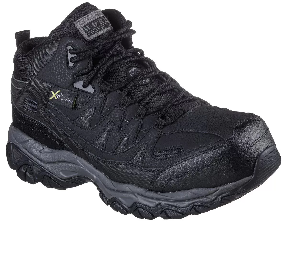 Shift into comfort and safety you can depend on in Skechers Work™: Holdredge – Thorem Carbon Toe. This slip-resistant boot features a lace-up leather and synthetic upper with a cushioned Skechers Air-Cooled Memory Foam® comfort insole, and a carbon nano safety toe with an internal metatarsal guard.