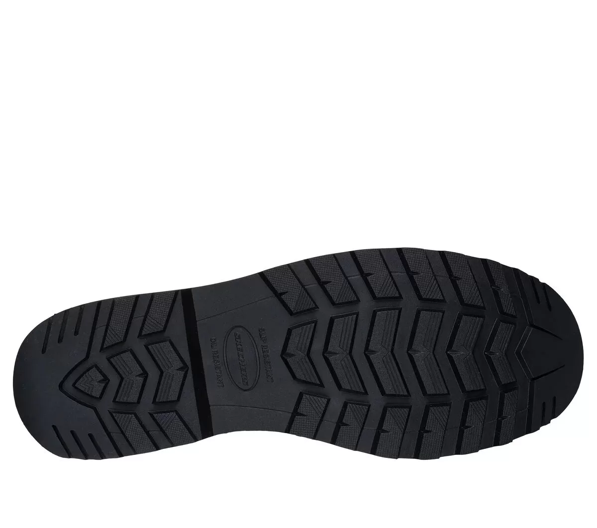Dependable comfort and safety combine with top-notch style in Skechers Work™: Longrider. This premium leather lace-up boot features a padded collar, a heat, oil, and slip-resistant outsole, plus a steel safety toe.