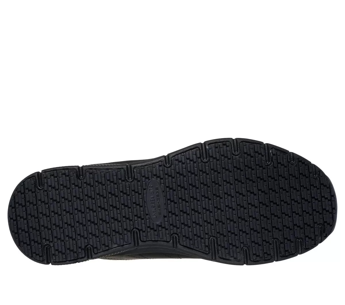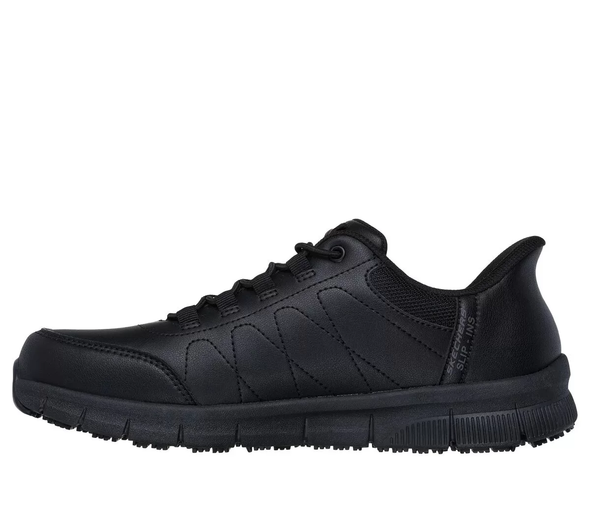Surefooted comfort and easy-wearing safety combine in Skechers Hands Free Slip-ins® Work™: Nampa – Knotly. This slip-resistant design features a smooth leather and synthetic upper with stitching detail, stretch laces, and a cushioned Skechers Memory Foam™ insole.
