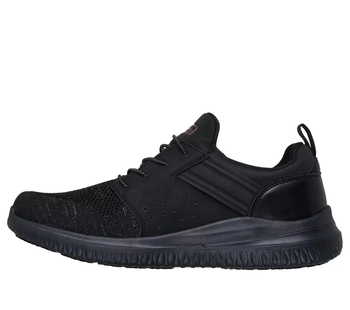 Simply step in and go wearing Skechers Hands Free Slip-ins®: Delson 3.0 – Oteron. Designed with our exclusive Heel Pillow™, this slip-resistant design features a mesh and synthetic upper with stretch laces, plus a cushioned Skechers Air-Cooled Memory Foam® comfort insole.