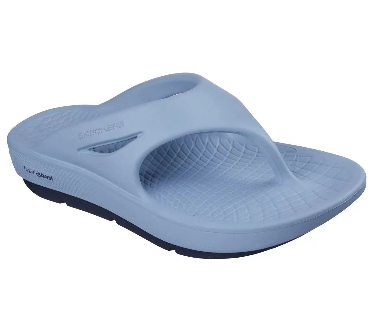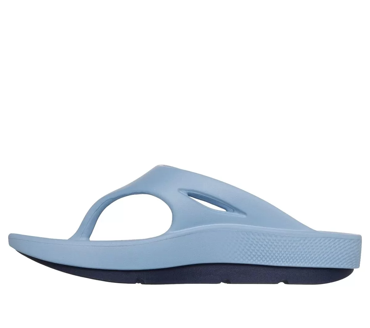 Relax in specialized comfort and style wearing Skechers GO RECOVER® Refresh – Contend. This athletic recovery thong sandal has been granted the APMA Seal of Acceptance and features a synthetic upper with premium Hyper Burst® foam and Arch Fit® support redistributes pressure for impact reduction.