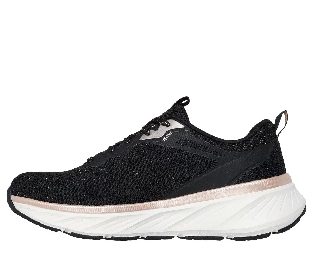 Enjoy well-cushioned performance while minding your footprint wearing Skechers Relaxed Fit®: Edgeride – Soft Radiance. Designed with recycled materials, this vegan athletic style features a lace-up engineered mesh upper with metallic trim, a well-cushioned midsole, and a Skechers Air-Cooled Memory Foam® insole. Our Planet Matters®: Good for your feet. Good for the world.®