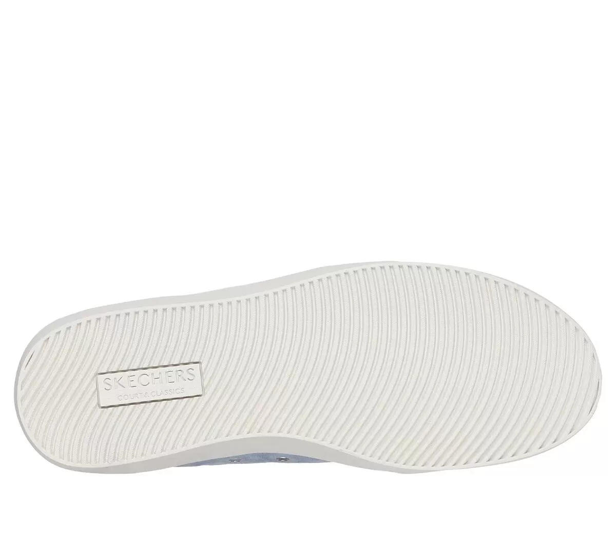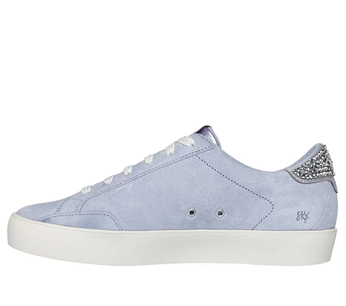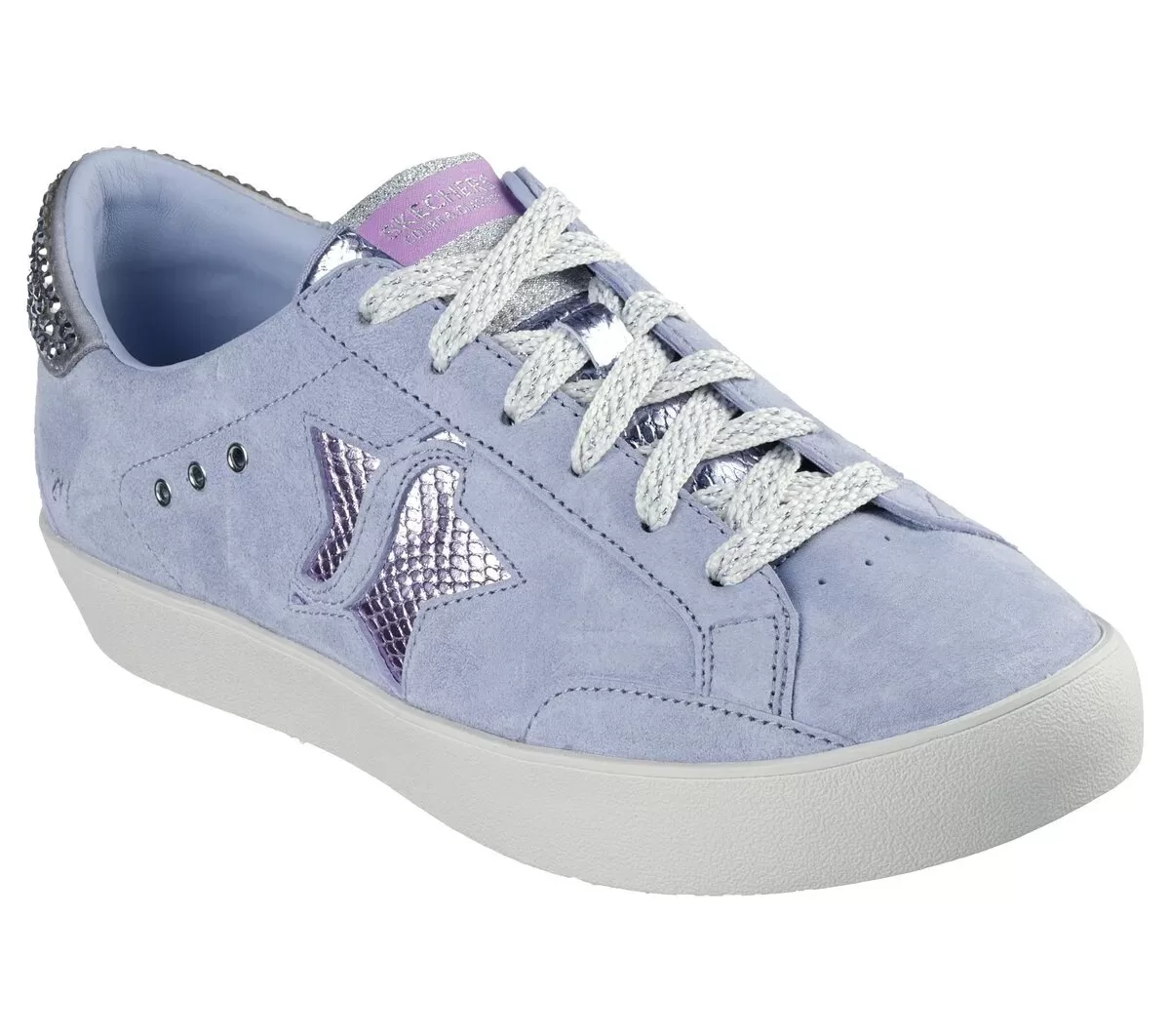 Find your star power style with uncompromising comfort wearing Skechers Strand Star – Leading Star. This low-top fashion lace-up features a suede upper with a metallic duraleather star detail, a Skechers Air-Cooled Memory Foam® cushioned insole, and court-style midsole with hidden heel wedge.