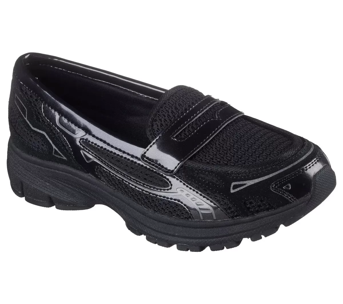 Let your sporty side shine in casual comfort with Skechers Var-City. This easy-on vegan loafer features a mesh and duraleather upper with metallic accents and a Skechers Air-Cooled Memory Foam® insole.