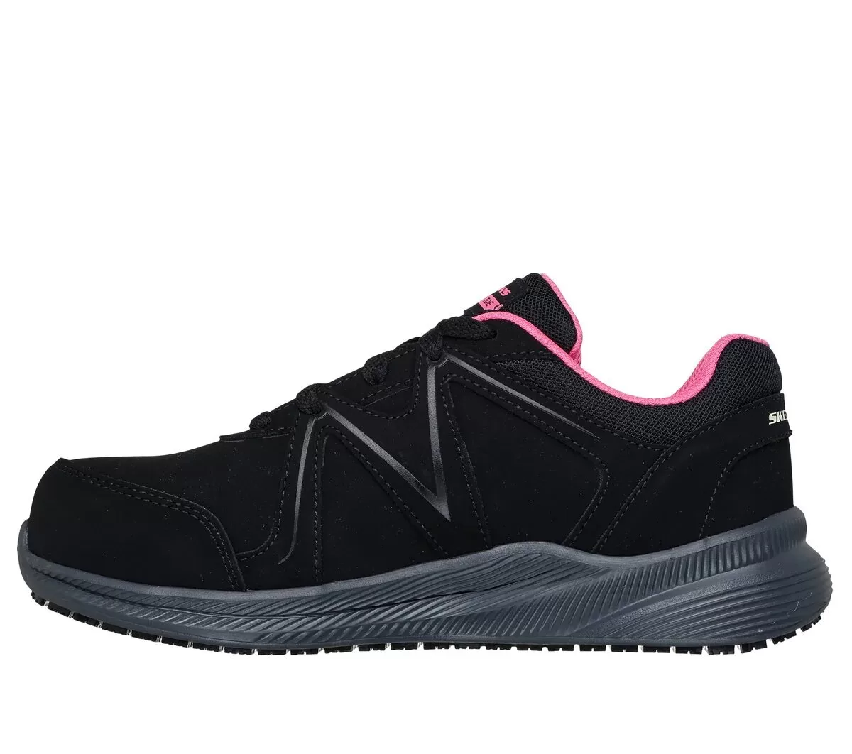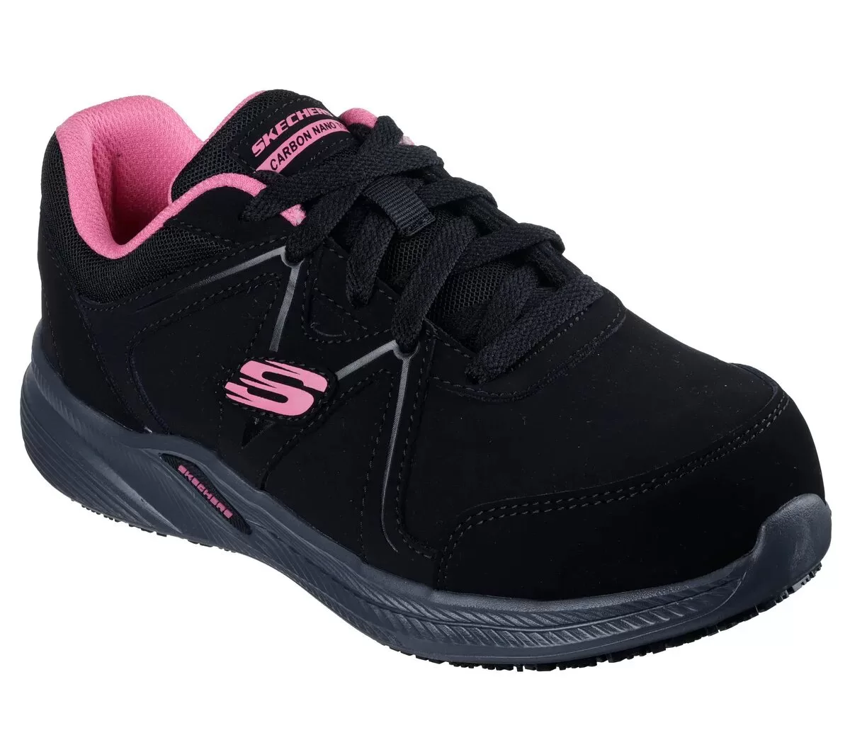 Surefooted comfort and safety combine in Skechers Work™ Carbix – Endaria. This slip-resistant athletic style features a lace-up leather and synthetic upper, a cushioned Skechers Air-Cooled Memory Foam® insole, and a carbon nano composite toe.