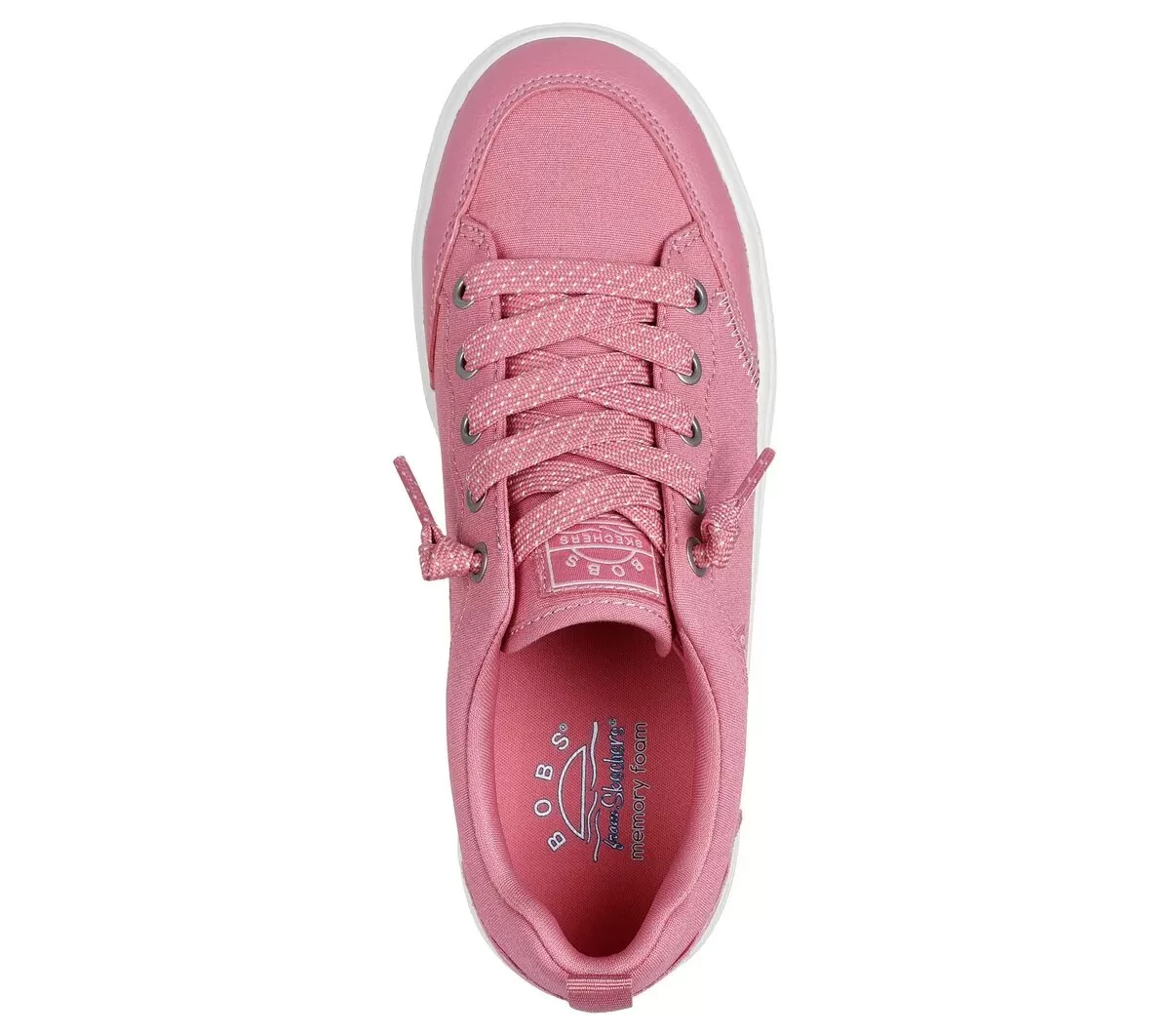 Give back and get comfy with BOBS® from Skechers® Meadow. This casual design features a canvas upper with a duraleather toe cap, stitching detail, tied-off laces, and a cushioned Skechers Memory Foam™ insole. BOBS® from Skechers® is committed to saving the lives of pets in need.