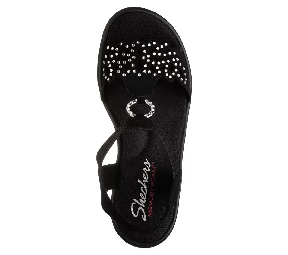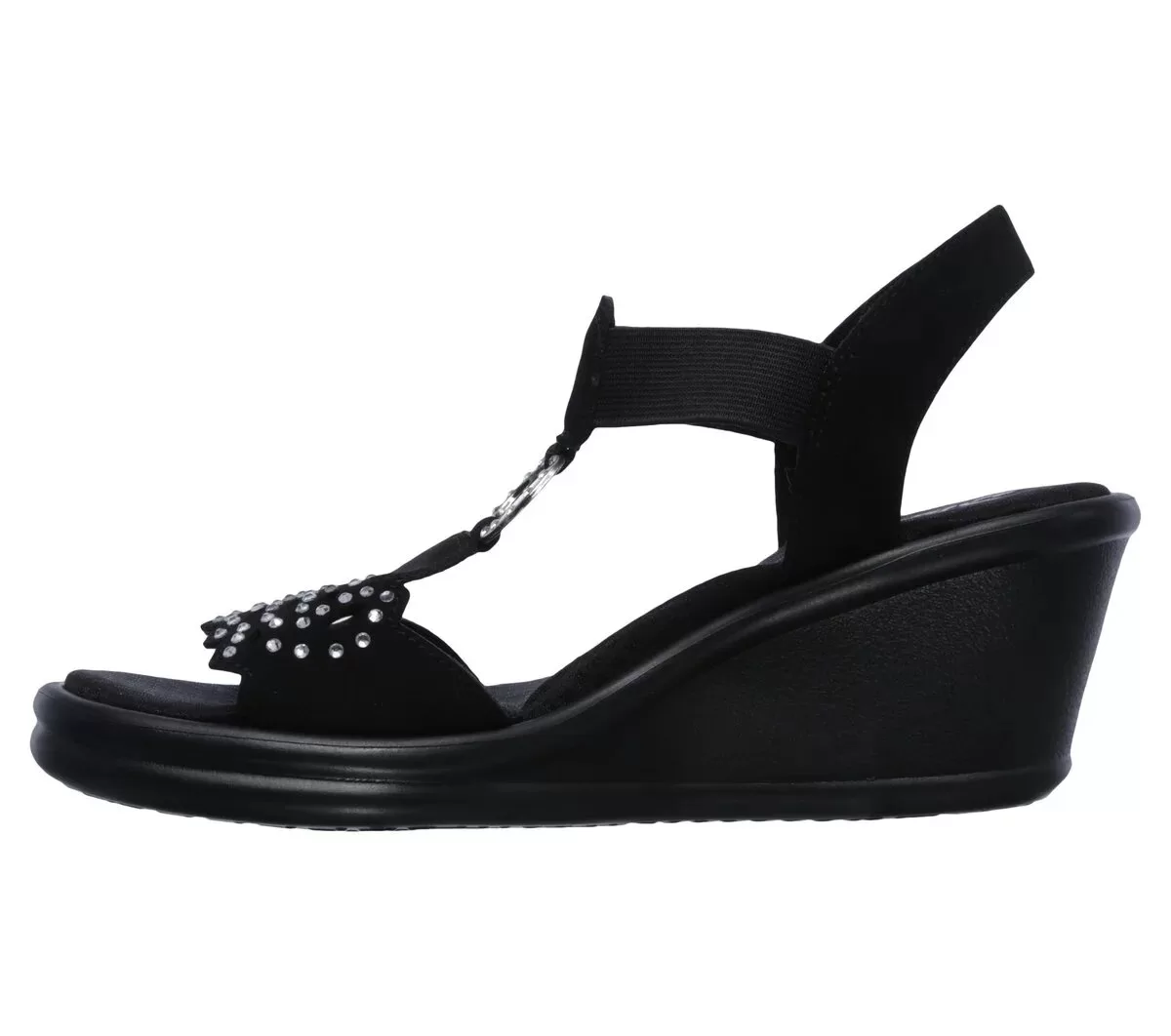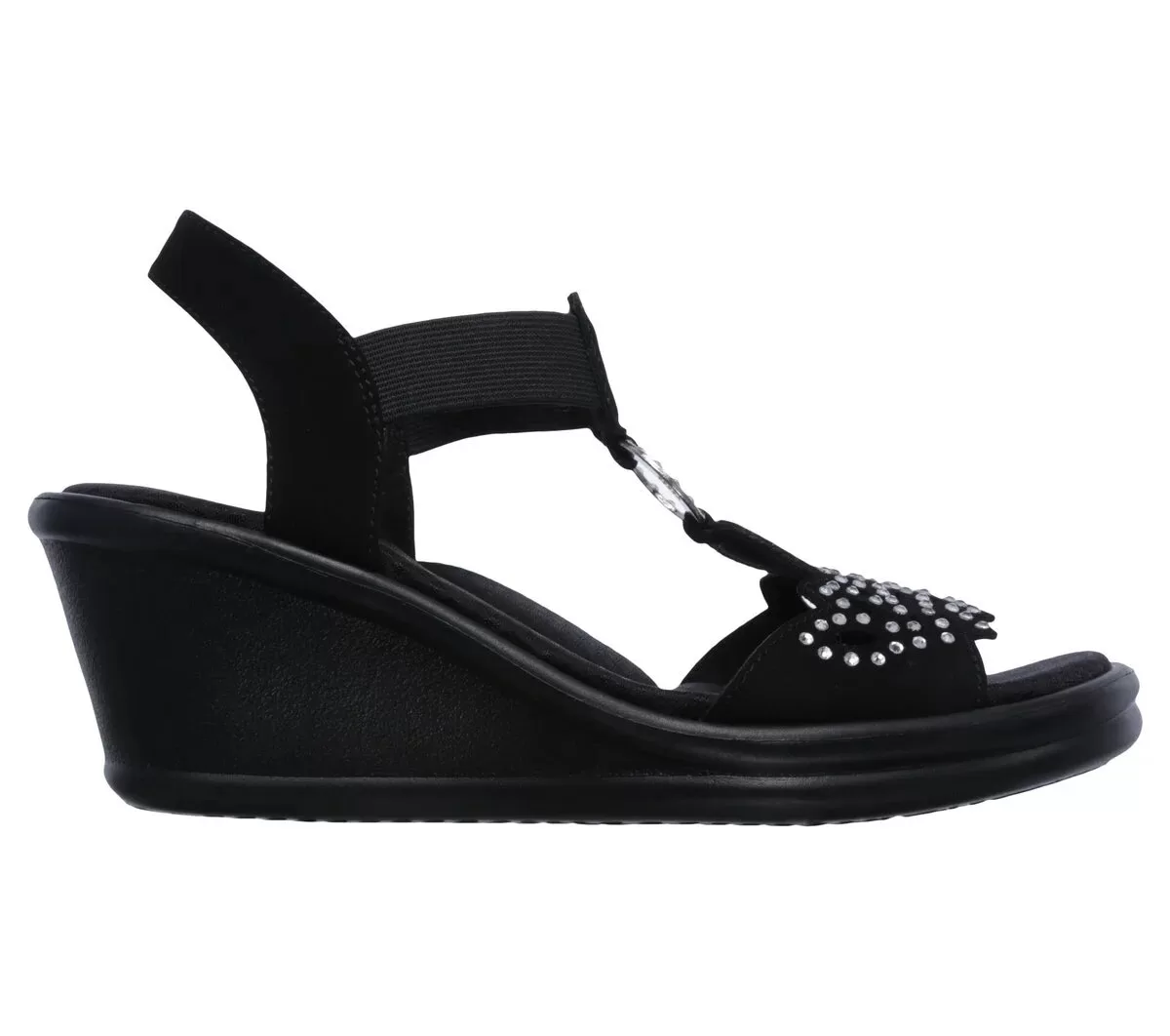 You gotta put a ring on the amazing style of Skechers Cali® Rumblers – Queen B. This casual wedge-heeled slingback slide style features a leather-textured synthetic upper with stretchy instep strap and rhinestone details, plus Memory Foam comfort footbed.
