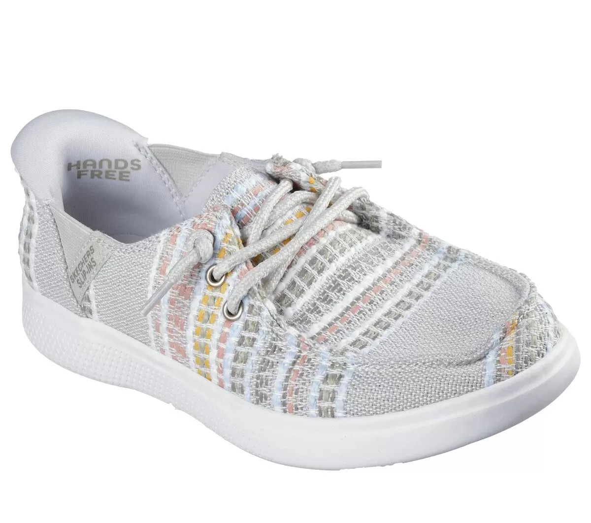 Step into easygoing comfort wearing Skechers Hands Free Slip-ins®: BOBS from Skechers® Skip Cute – August Air. Designed with our Exclusive Heel Pillow™, this casual beach inspired slip-on features a woven upper with deco laces and a cushioned Skechers Memory Foam™ insole. BOBS® from Skechers® is committed to saving the lives of pets in need.