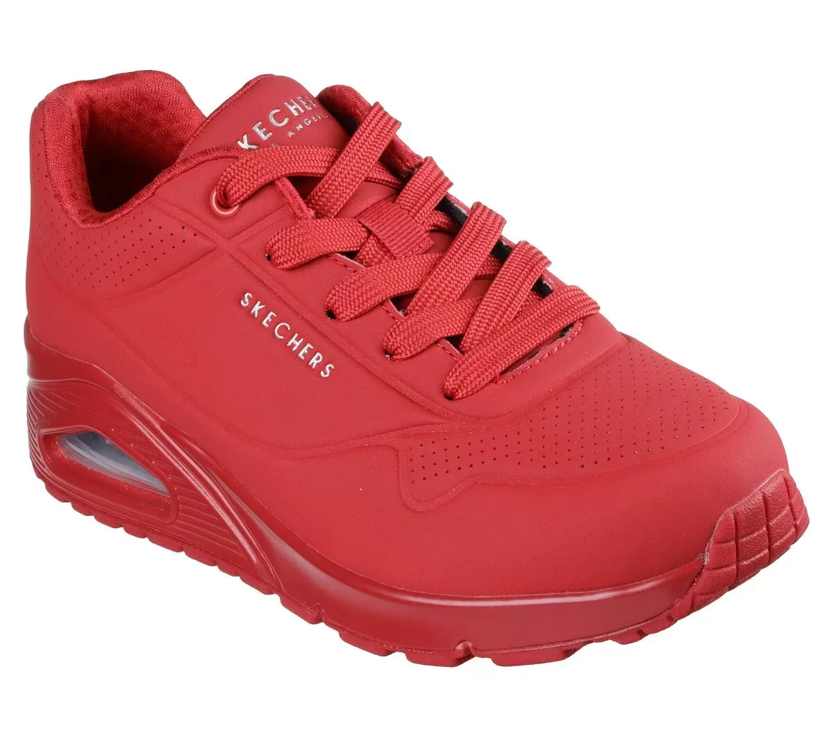 Classic air-cushioned comfort gets a fresh update in Skechers Street™ Uno – Stand on Air. This lace-up fashion style features a smooth perforated synthetic upper with an Air-Cooled Memory Foam insole, and a Skech-Air visible air-cushioned midsole.