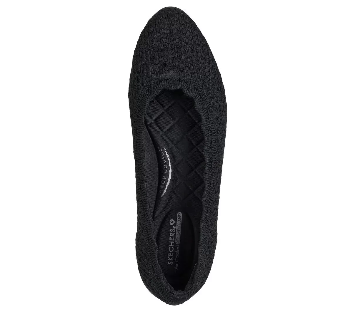 Our Planet Matters. Versatile style meets earth-friendly comfort with Skechers Cleo® Walk. Designed with recycled materials, this vegan Stretch Fit® skimmer features a recycled knit upper with scalloped trim and a cushioned Skechers Air-Cooled Memory Foam® insole with Arch Comfort™ support. Our Planet Matters®: Good for your feet. Good for the world.®