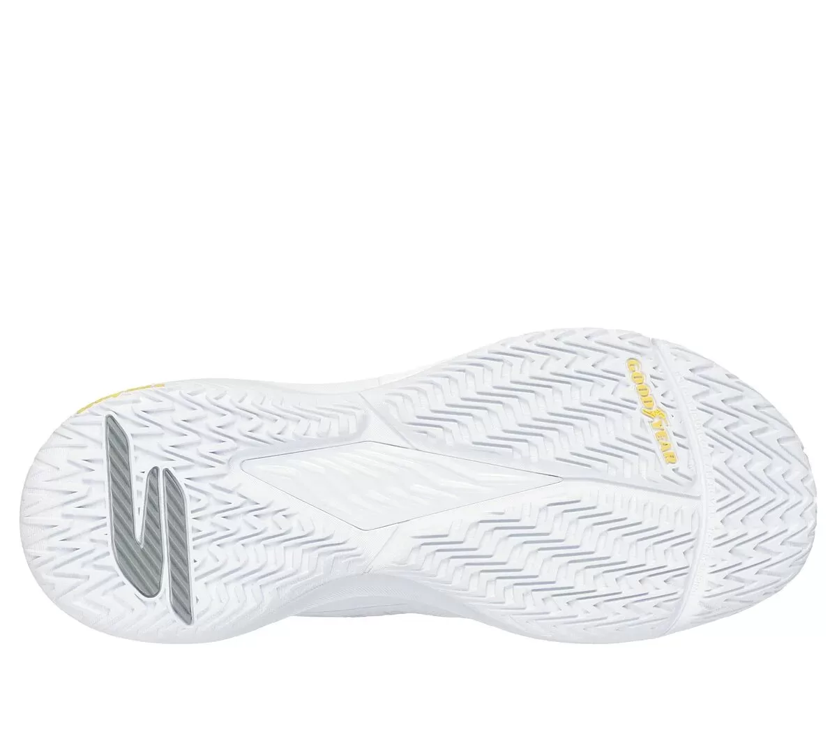 Experience lightweight speed and durability on the court wearing Skechers Hands Free Slip-ins®: Tennis Baseline Bully. Designed with our exclusive Heel Pillow™, this innovative tennis slip-on features a breathable mesh and synthetic overlay upper with a reinforced toe front for durability during overhead serves and volleys, plus a lateral quarter wrap for sudden stops. A Move Foam® insole, ULTRA GO® midsole, and Goodyear® Gold compound outsole round out the design, with the latter built for increased wear resistance – allowing the player to perform controlled slides on the court surface.