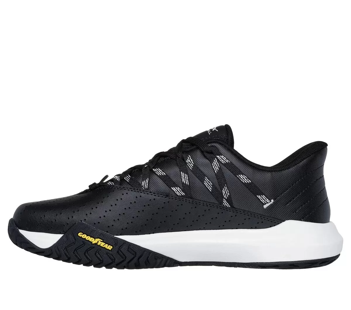 Step up your game with Skechers Viper Court Rally™. This lace-up Pickleball shoe features a mesh and perforated leather overlay upper with a lightweight Move Foam™ insole. The design is complete with a Goodyear® Gold compound outsole that’s built for increased durability to allow the elite player to perform controlled slides specifically on the pickleball court surface.
