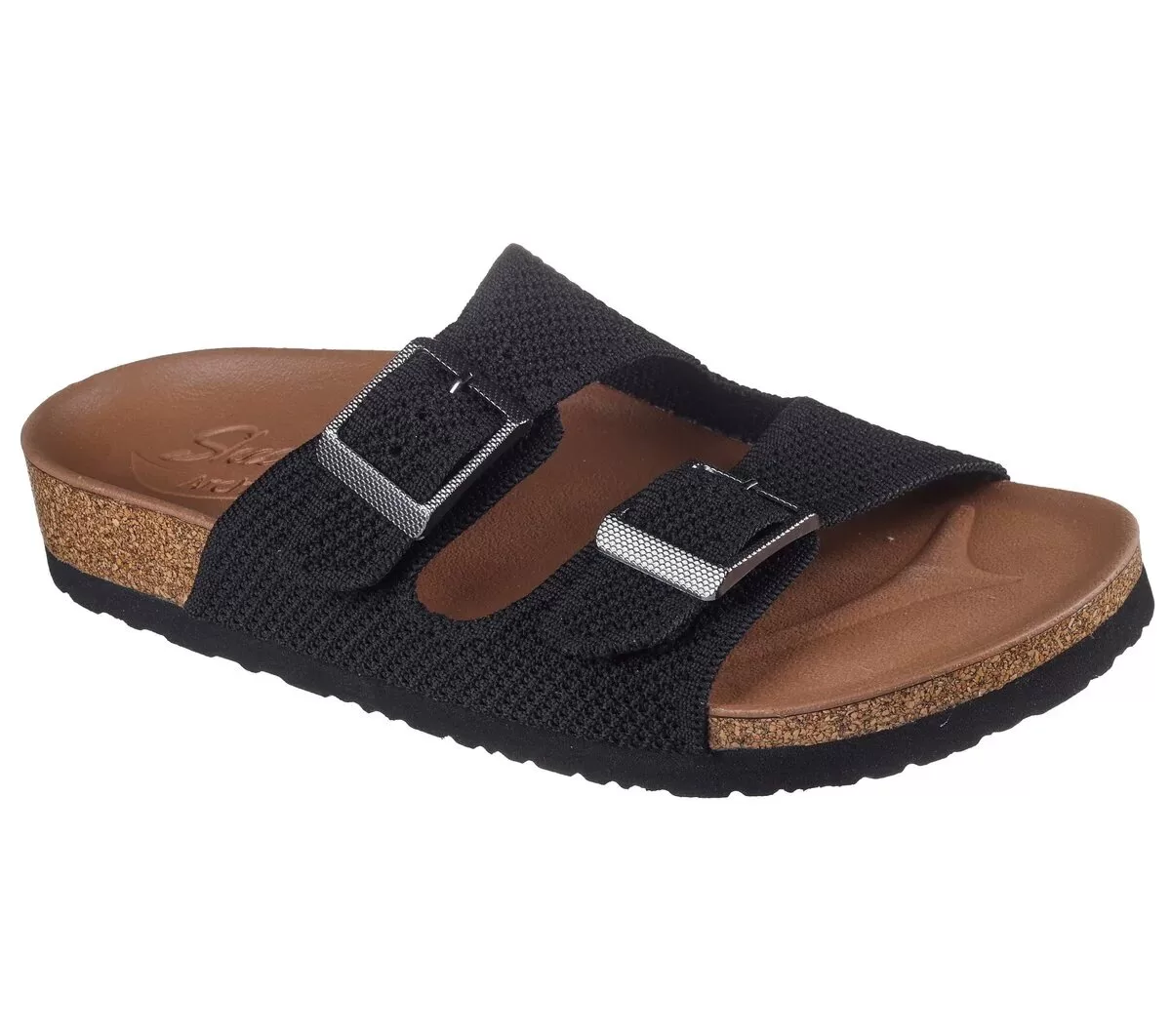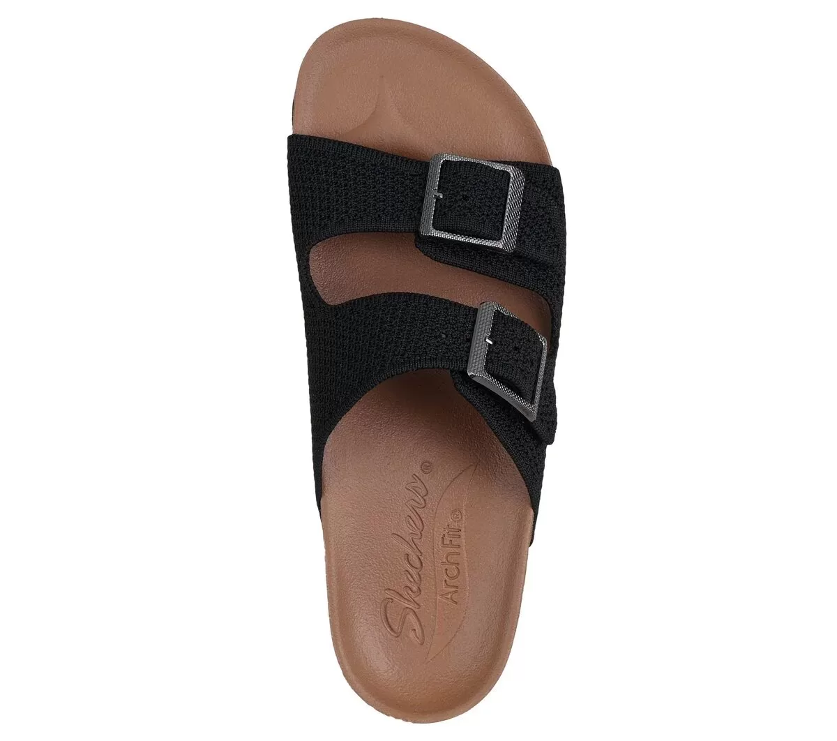 Slide into breathable laid back style wearing Skechers Arch Fit® Granola – Mellow Skies. This vegan double band slide sandal has been granted the APMA Seal of Acceptance and features a knit upper and a supportive Arch Fit® footbed with Luxe Foam® cushioning.