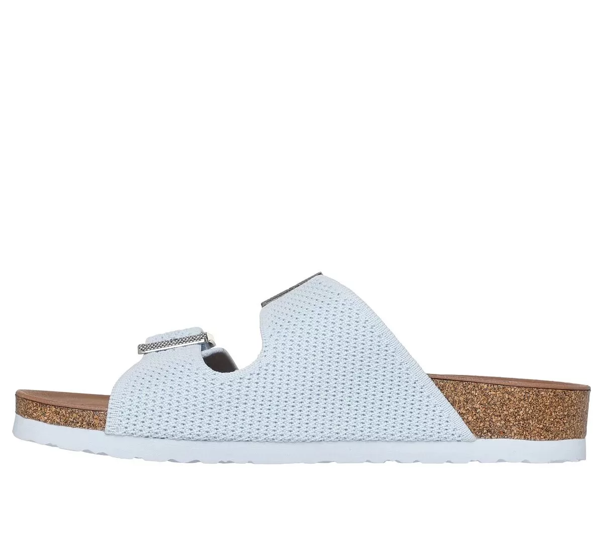 Slide into breathable laid back style wearing Skechers Arch Fit® Granola – Mellow Skies. This vegan double band slide sandal has been granted the APMA Seal of Acceptance and features a knit upper and a supportive Arch Fit® footbed with Luxe Foam® cushioning.