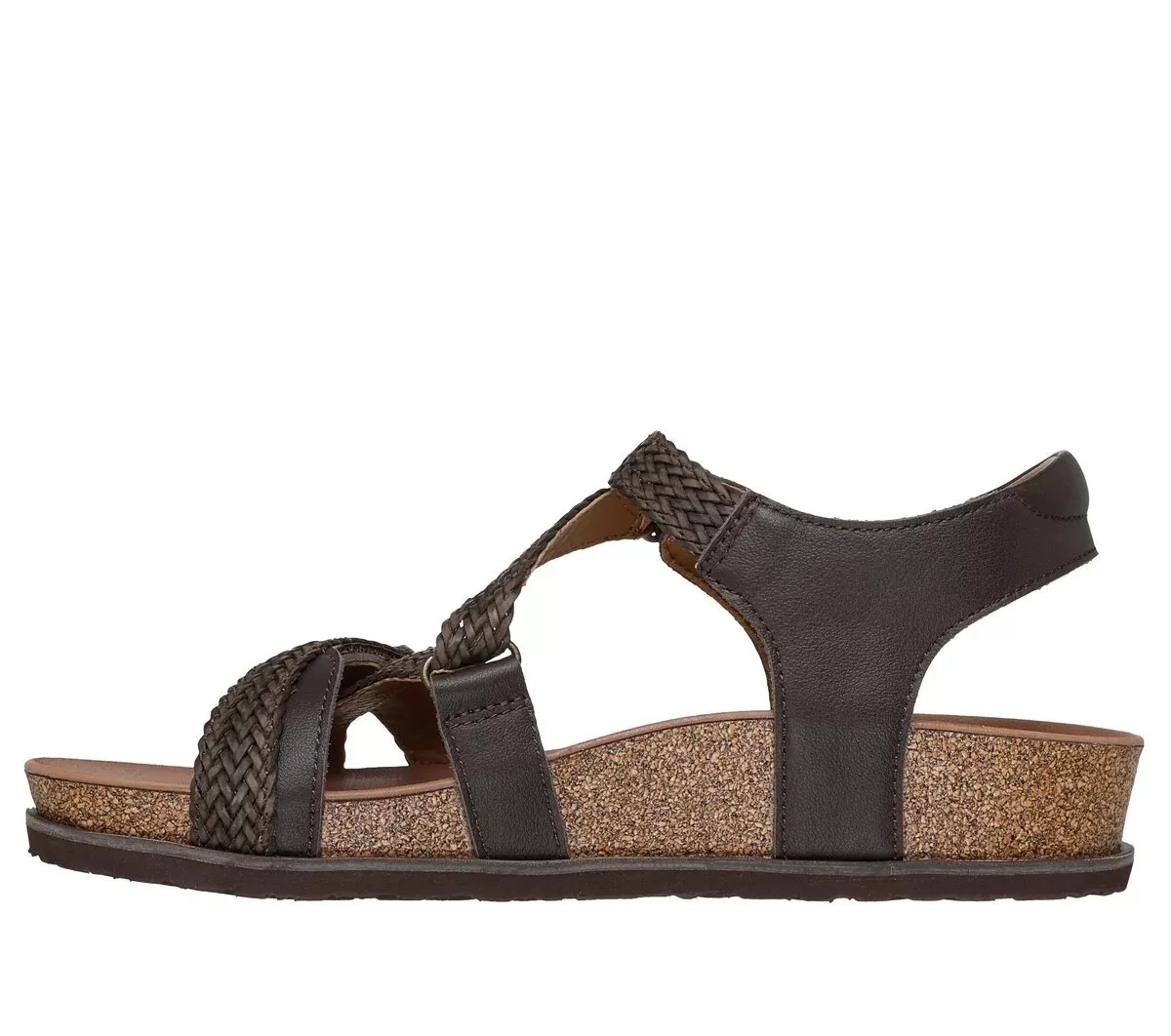 Unwind in stylish warm-weather comfort wearing Skechers Arch Fit® Granola Slim – True Vibe. This strappy slingback sandal has been granted the APMA Seal of Acceptance and features a woven leather upper with two adjustable hook-and-loop closures and a supportive Arch Fit® footbed with Luxe Foam® cushioning.