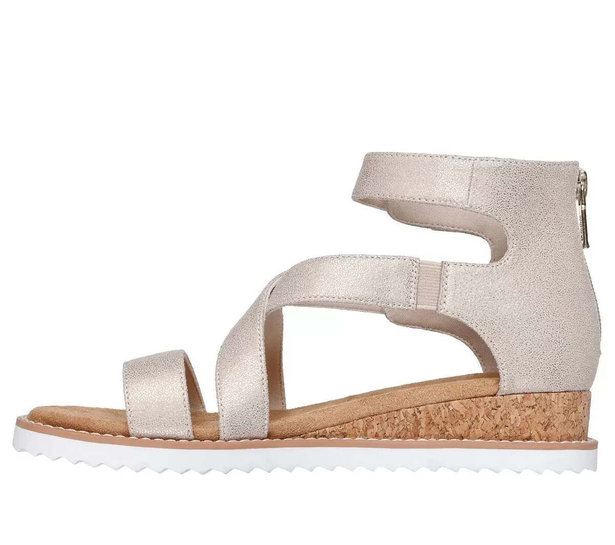 Enjoy warm weather in comfort and breezy style wearing BOBS® from Skechers® Desert Kiss – Golden Dahlia. This vegan gladiator sandal features a printed microfiber upper with buckled ankle straps, a zipper at the back heel, and a cushioned Skechers Memory Foam™ footbed. BOBS® from Skechers® is committed to saving the lives of pets in need.