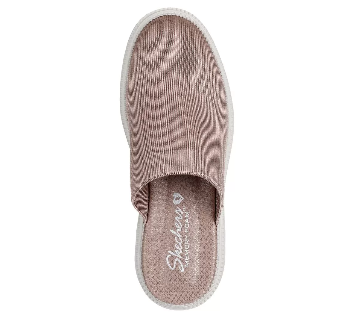 Experience the height of eco-friendly style in Skechers Cleo Brooklyn. Designed with recycled materials, this vegan open-back mule style features a Stretch Fit® ribbed knit upper and a Skechers Memory Foam™ comfort footbed. Our Planet Matters®: Good for your feet. Good for the world.®