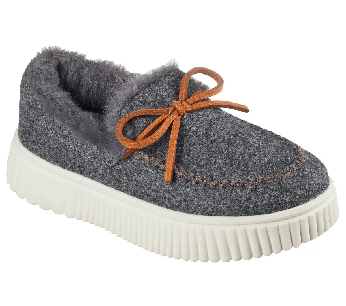 Delve into plush comfort all season long with Skechers Cozy Ojai. This moccasin inspired style features a faux wool upper with a bow front, faux-fur lining, and a cushioned Skechers Memory Foam™ insole.